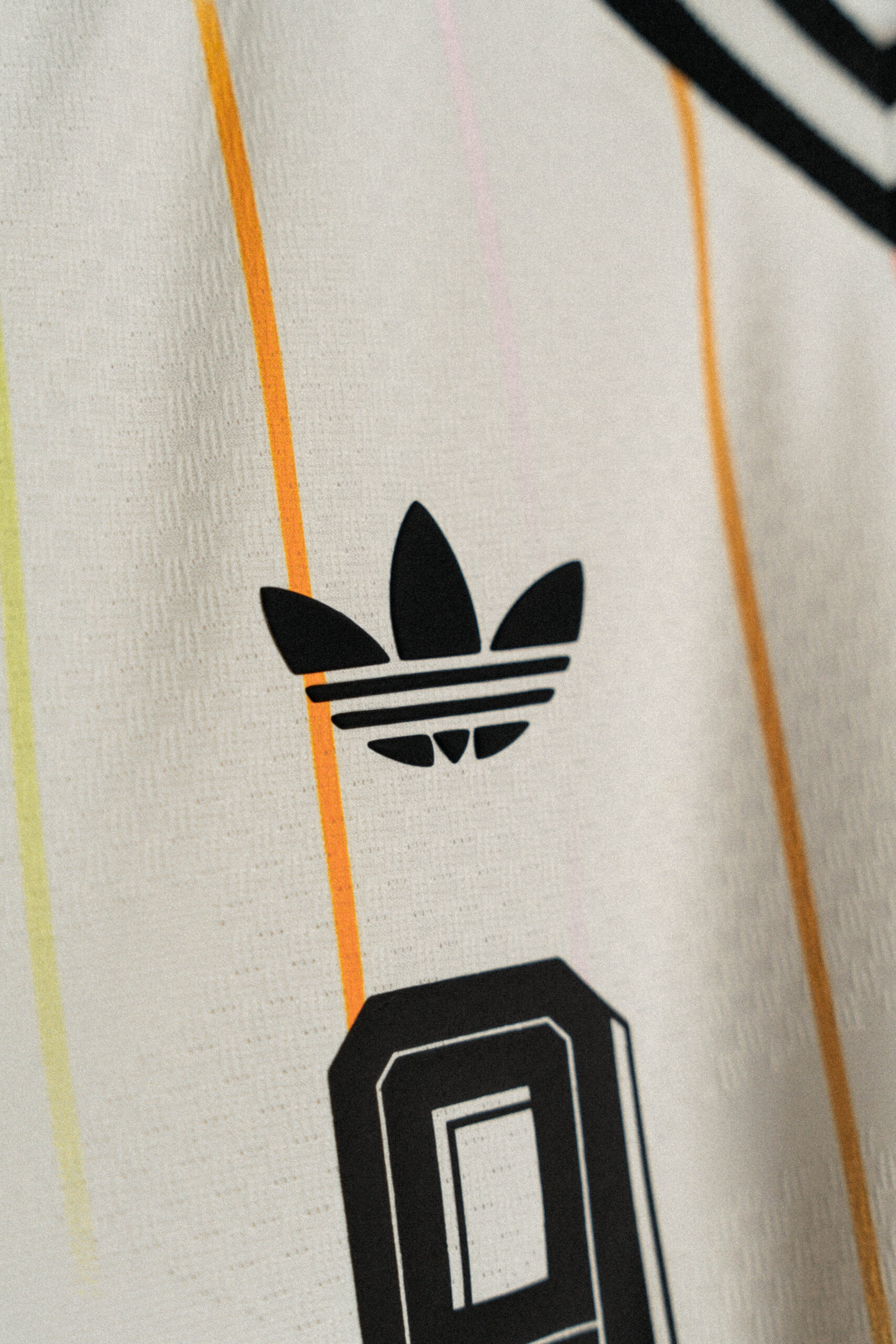 今作最大の衝撃は、アディダスの歴史を象徴する「トレフォイルロゴ(三つ葉)」の採用です。
