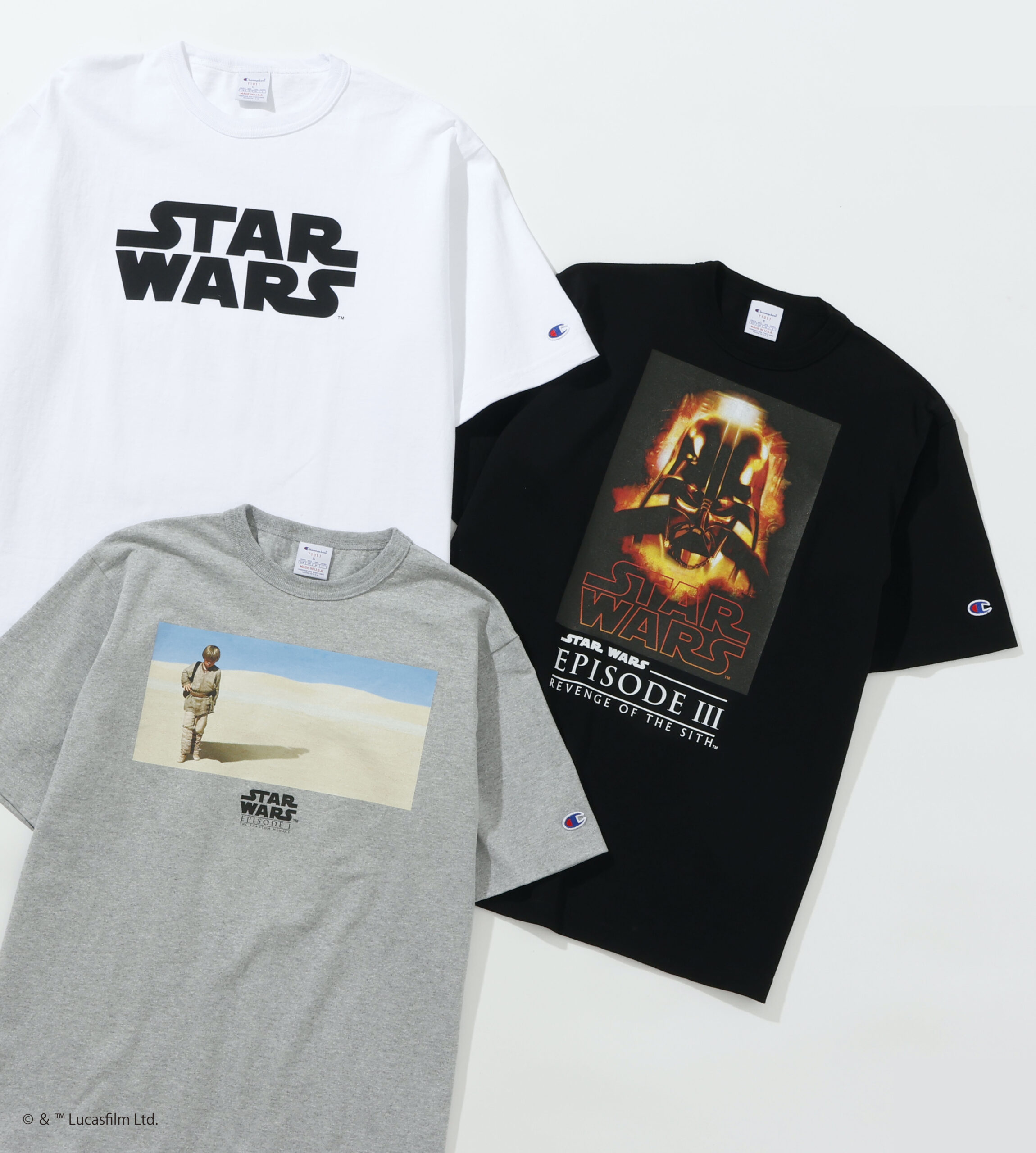 ヘインズブランズ ジャパンより、Championの代名詞ともいえるMade in USAのヘビーウェイトTシャツ「T1011(ティーテンイレブン)」を採用した『STAR WARS』限定コレクションが発表された。1977年の公開以来、世代を超えて愛され続ける壮大なサーガ。その象徴的なロゴや、物語の核心に触れるアートワークを、USAコットン特有のドライな質感とタフなボディに落とし込んだ、ファン垂涎のスペシャルエディションだ。