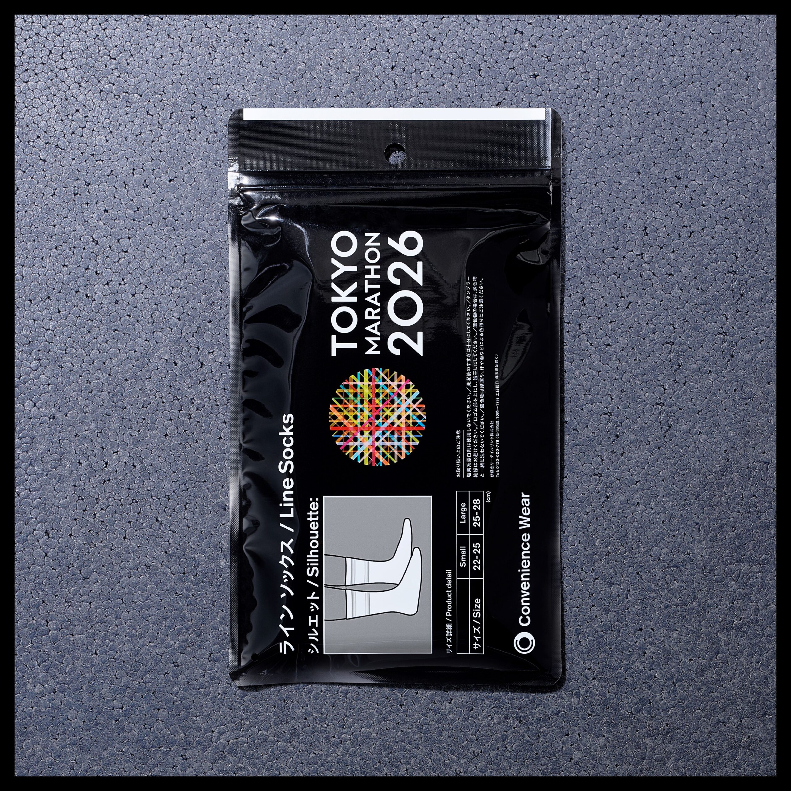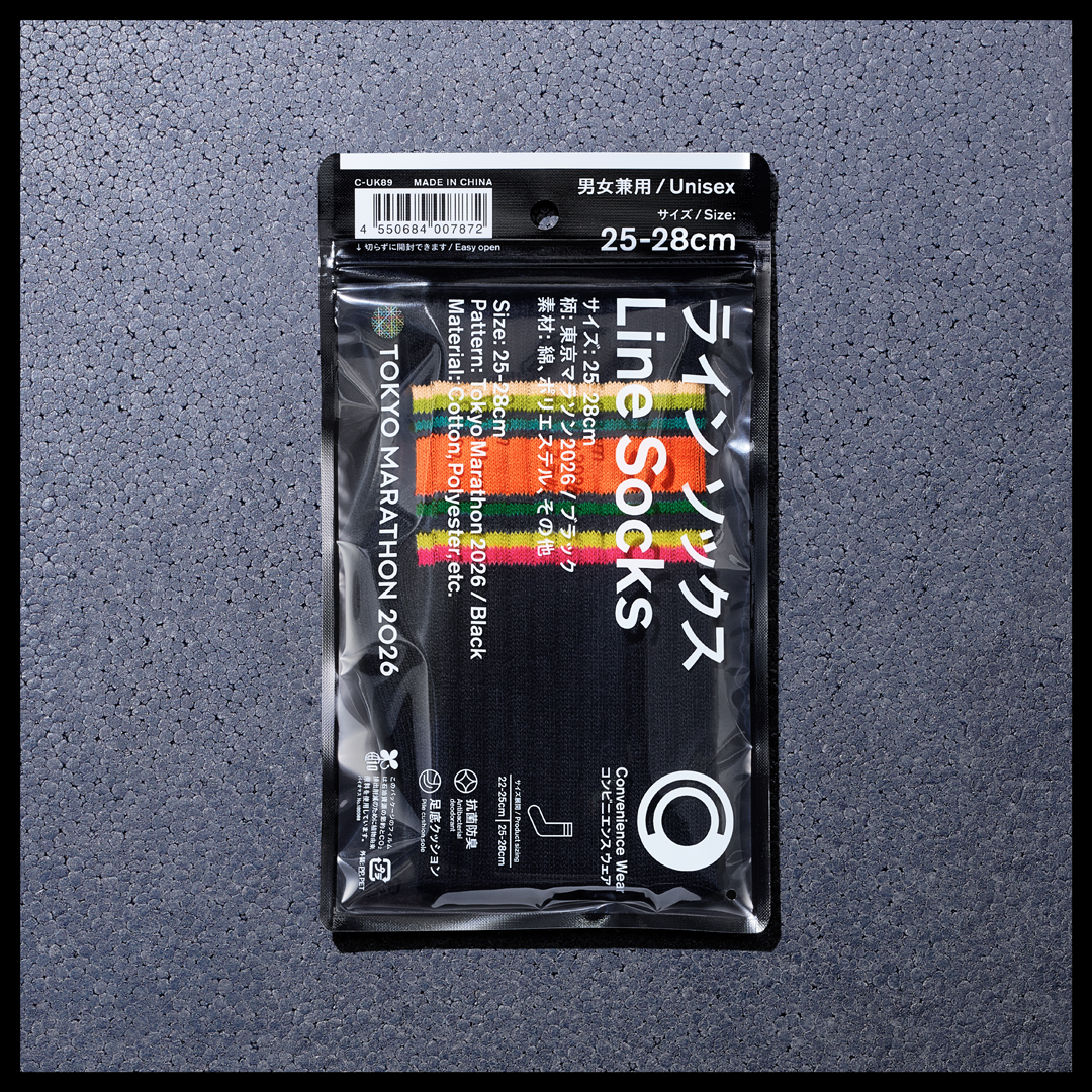 ラインソックス:ブランドのアイコンであるラインソックスが、東京マラソン仕様の限定配色で登場。足元から大会を盛り上げます。