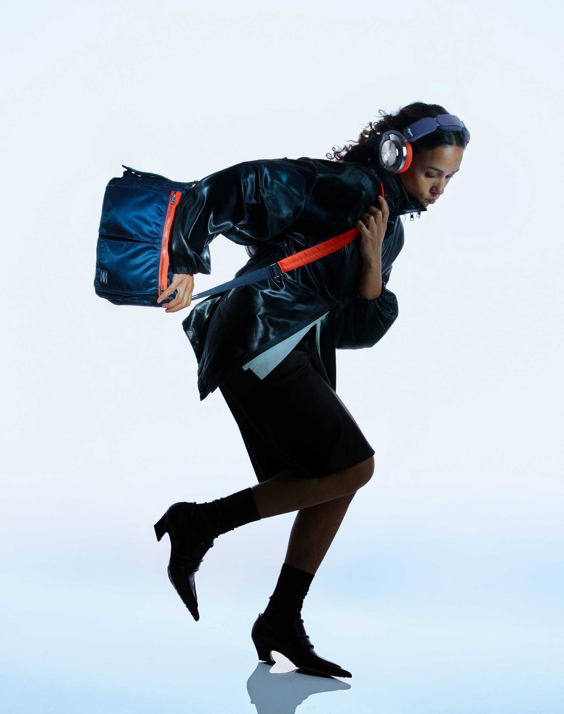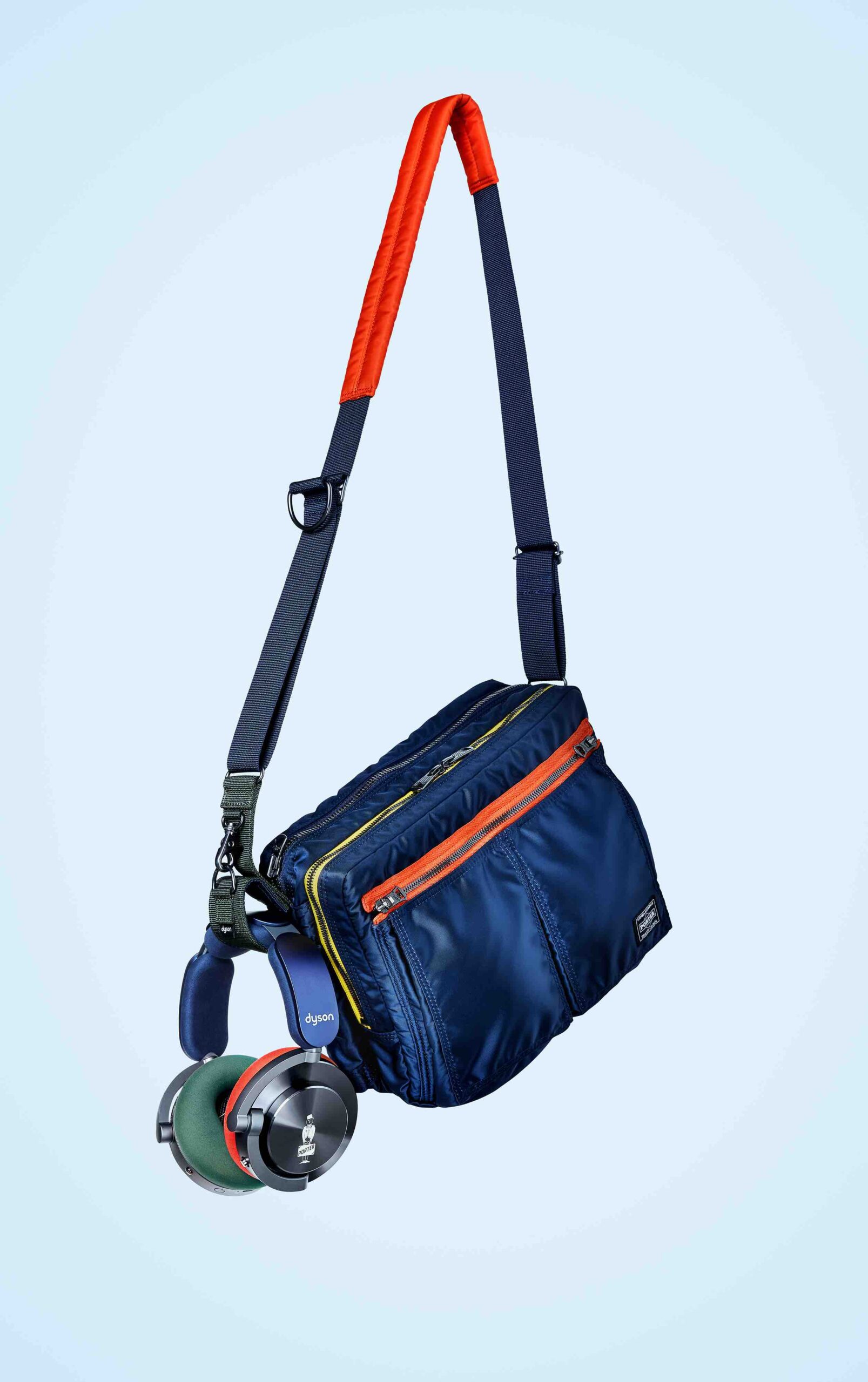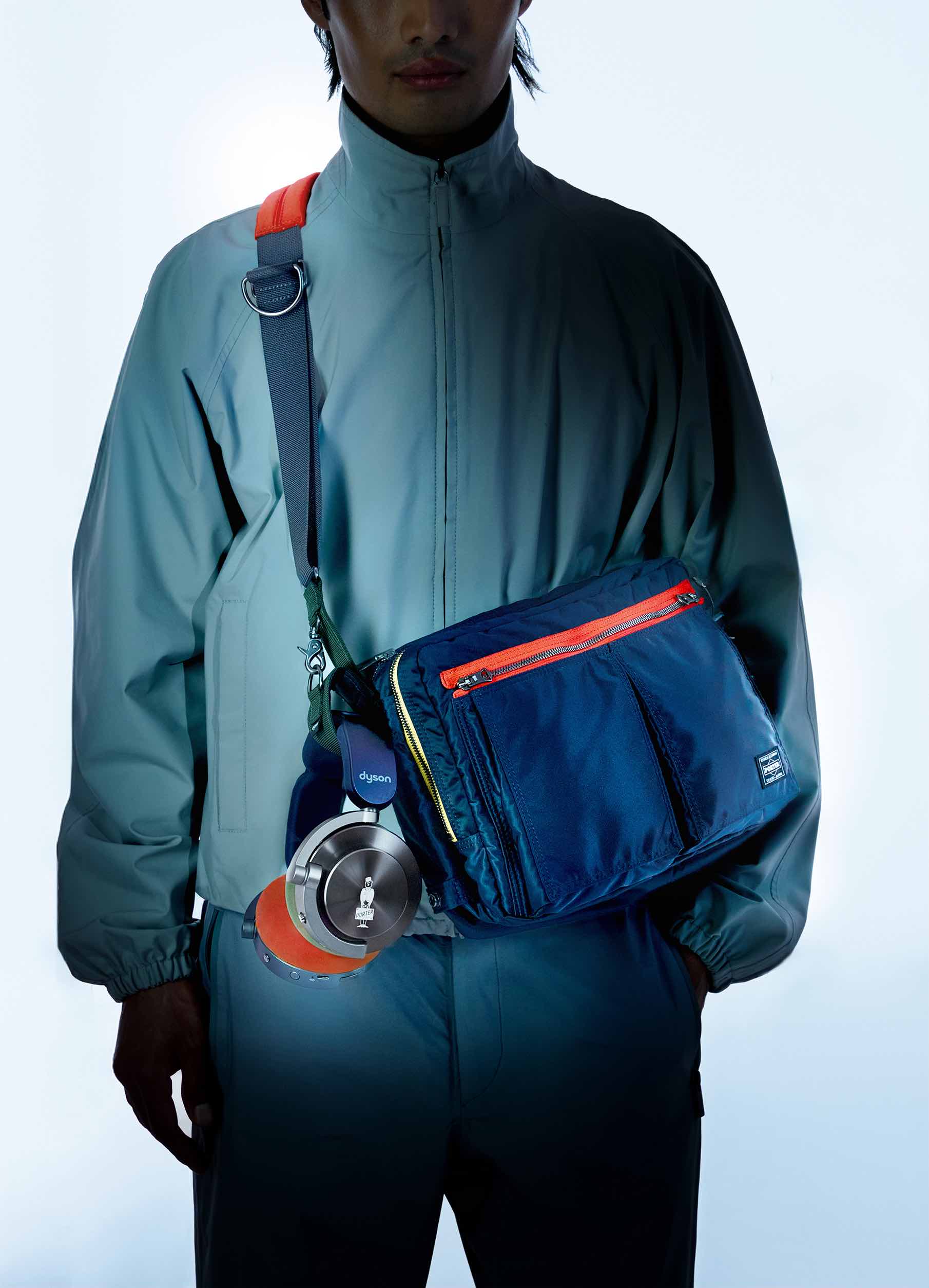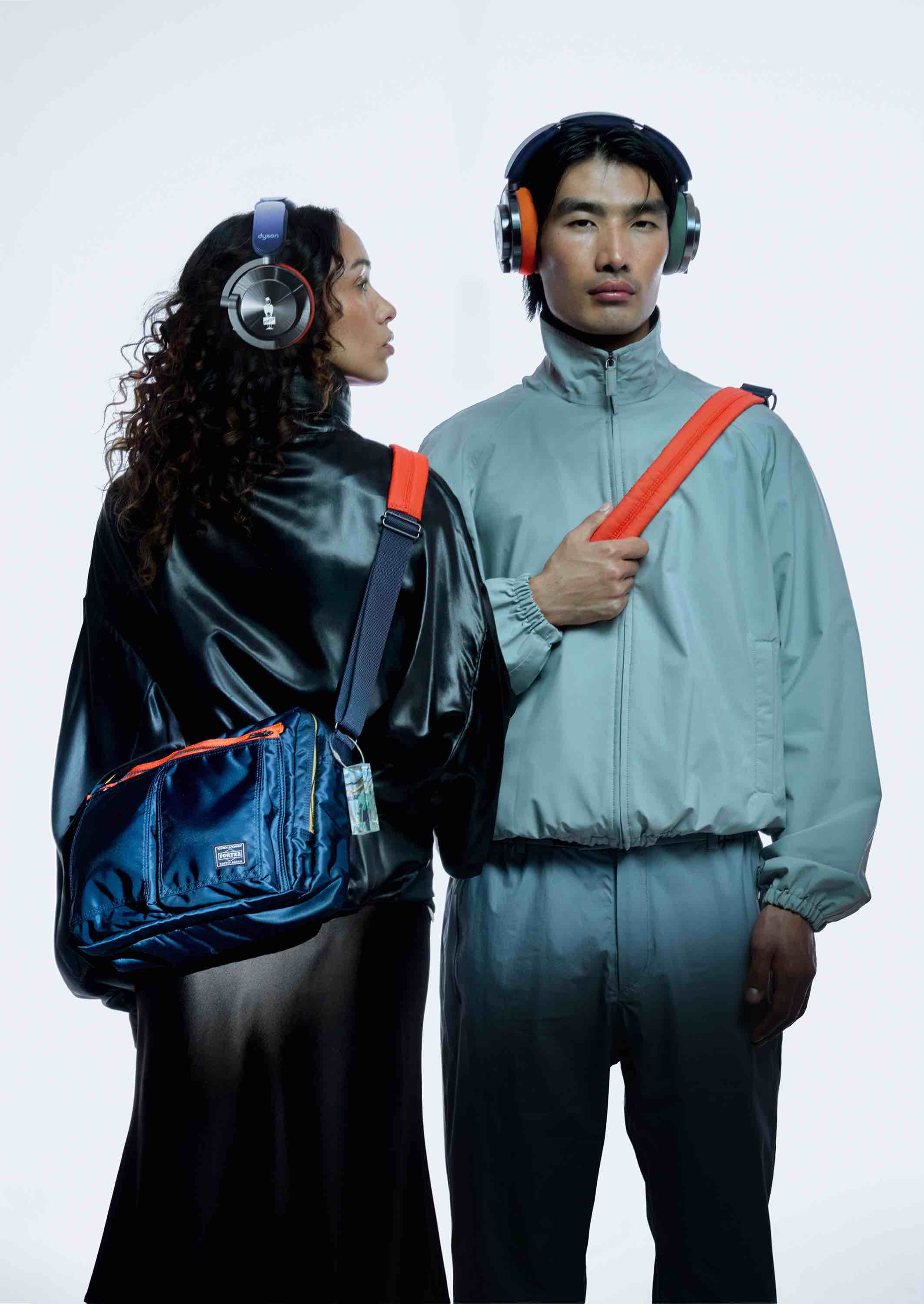 このコラボレーションのテーマは、「音を持ち運ぶ」。徹底した設計思想にもとづき開発された特別仕様のDyson OnTrac™ヘッドホンと、それに完璧に寄り添うPORTERのショルダーバッグがセットで製作されました。