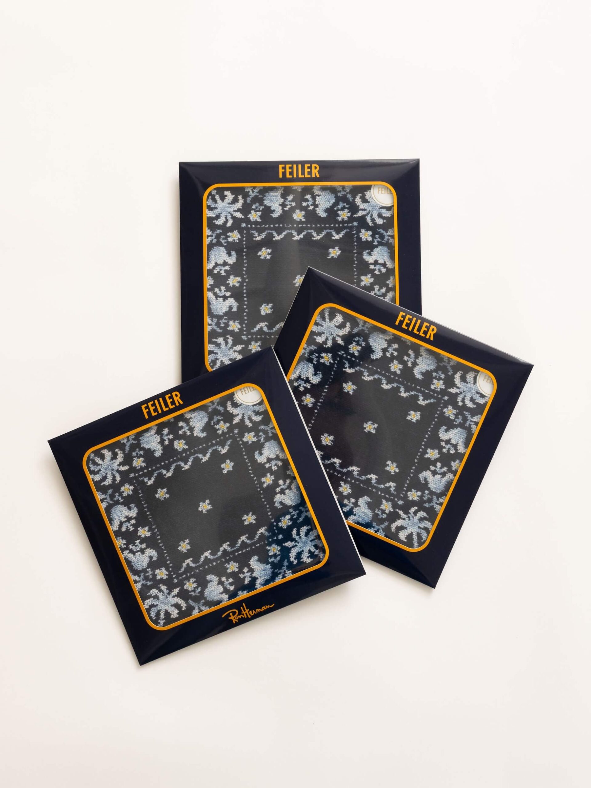FEILERは1948年にドイツ・バイエルン州で創業したブランドで、「シュニール織」と呼ばれる独特の織物技術を用いたハンカチやタオルで世界的に知られる存在だ。その繊細な色使いと上品な柄は、70年以上にわたって世代を問わず支持されてきた。