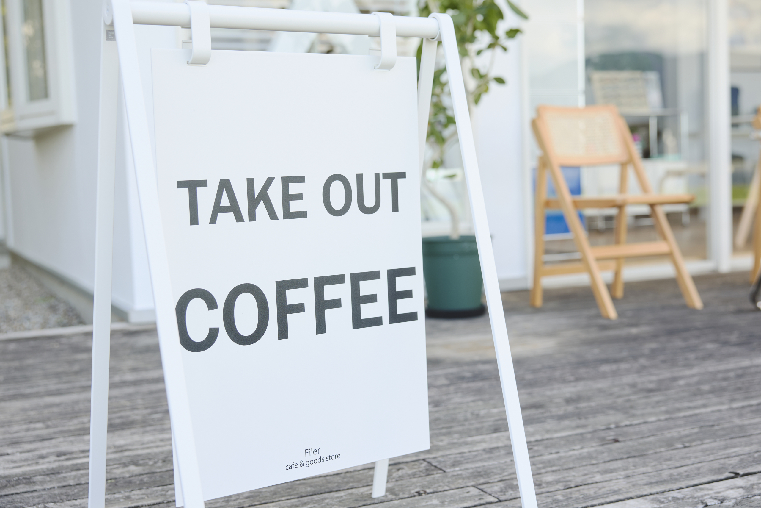 そこで遠くからでも分かるように『Take out coffee』の看板を設置したり、メニューを掲示したり、ワンちゃんと一緒にお茶ができるようウッドデッキにテーブルや椅子を出したりしました。こうすることで、“ショップだけでなくカフェも楽しめる場所”だと伝わるようになり、気軽にお茶を楽しんでいただいた後に商品もご覧いただける流れがスムーズになりました。