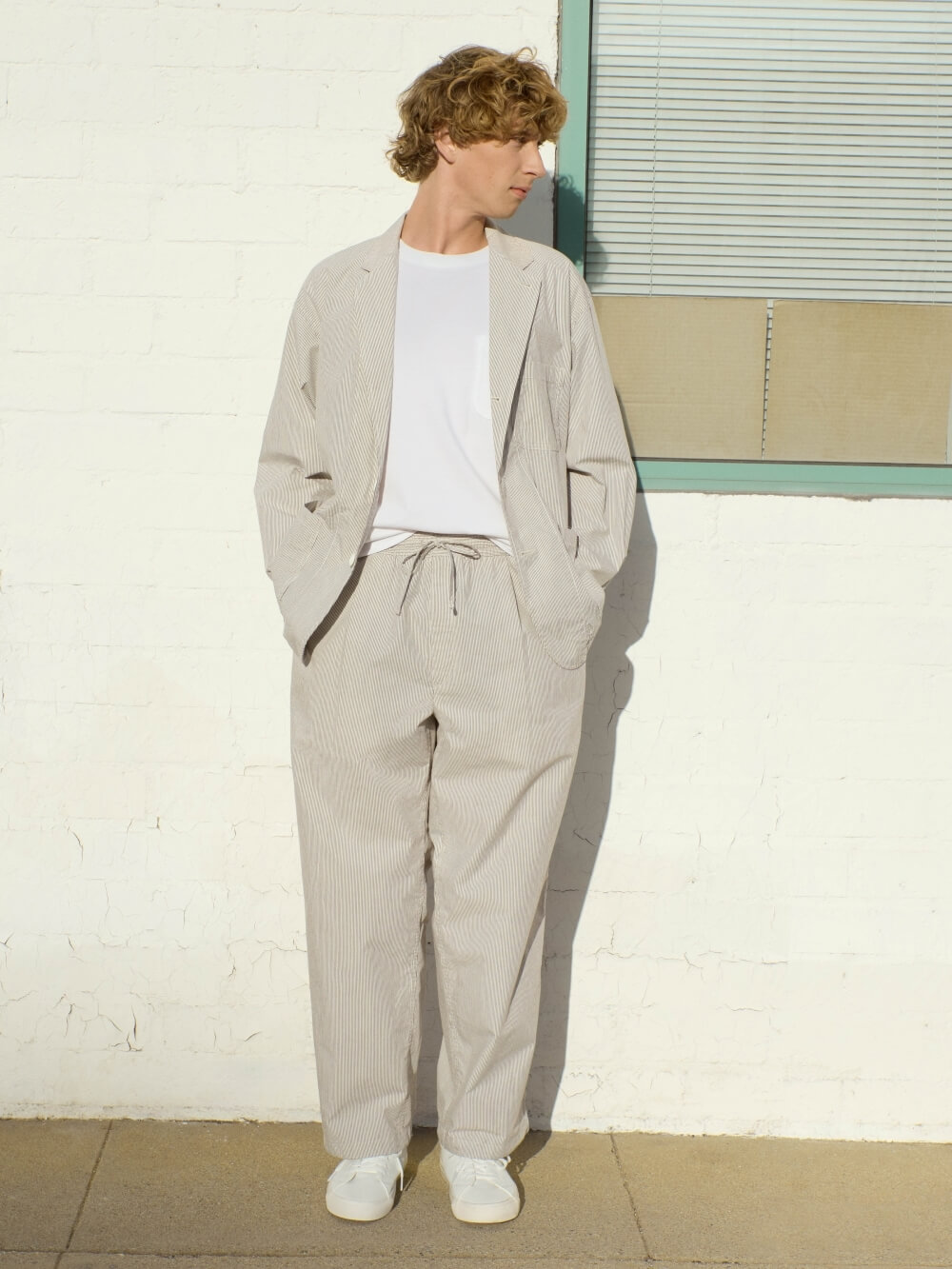 イージーパンツと合わせてセットアップとして着用するのが一番きれいに見えるが、単品でTシャツにあわせても成立する設計になっている。