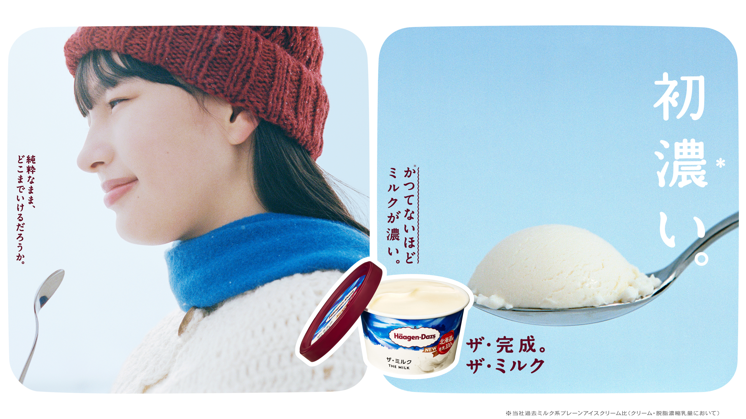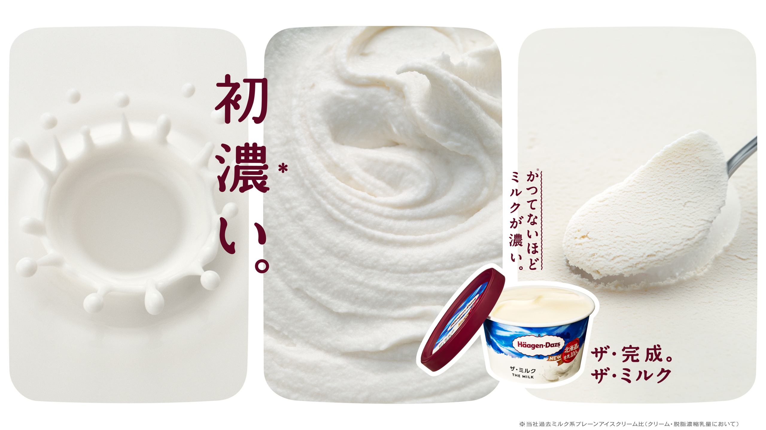 高品質なミルクの味わいを最大限に生かすため、ミルク、砂糖、卵、塩の4つの素材だけを使用。素材の配合にこだわることで、口に含んだ瞬間から感じる圧倒的なミルク感と、すっきりとした後味が楽しめるミルクアイスクリームの決定版が誕生しました。