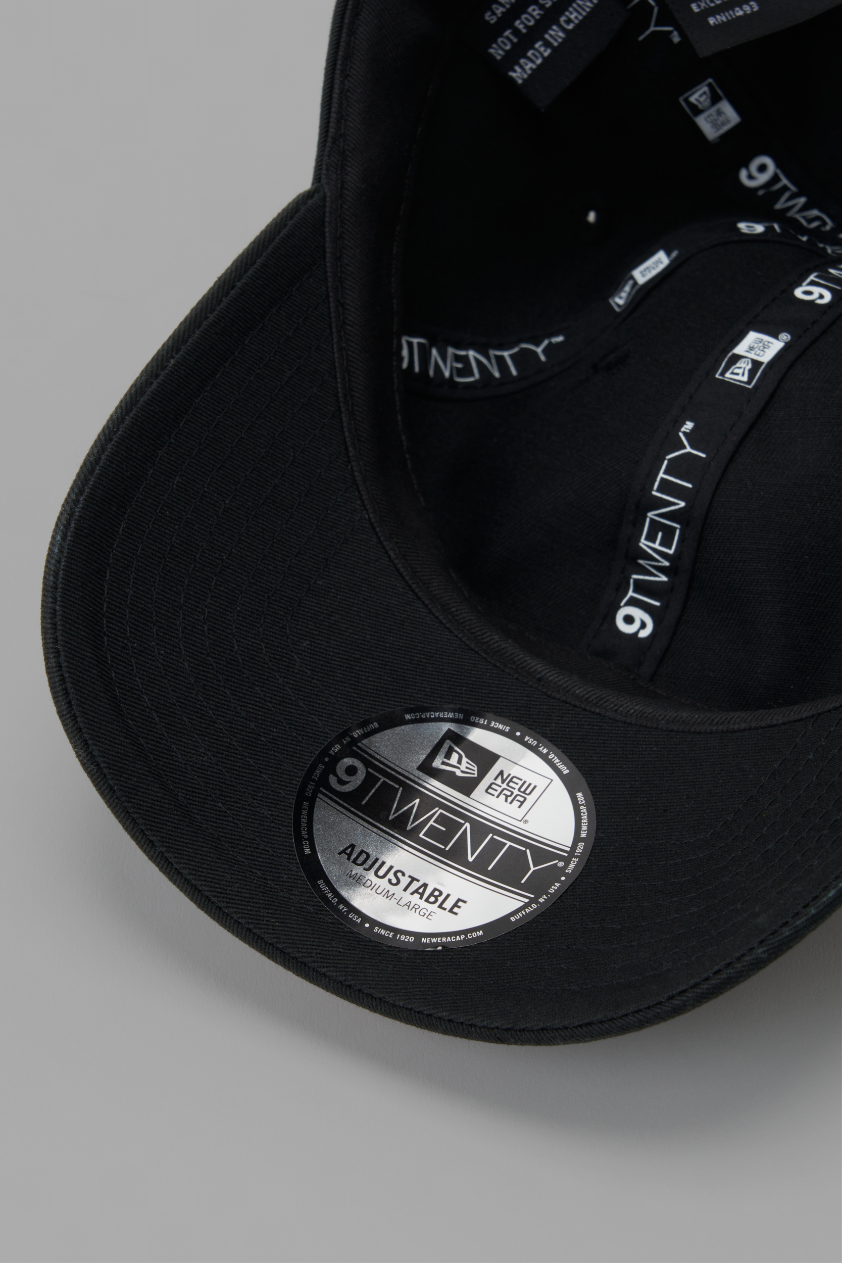 ベースモデルには、柔らかな被り心地とクラシックなシルエットが魅力のカーブドバイザーキャップ[9TWENTY™]を採用。リアストラップもステッカー同様のレザーへとアレンジされており、360度どこから見ても素材のコントラストが楽しめる仕様となっている。ストリートの文脈にレザーのぬくもりが加わることで、スタイルを選ばない洗練された佇まいを実現した。