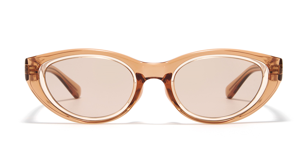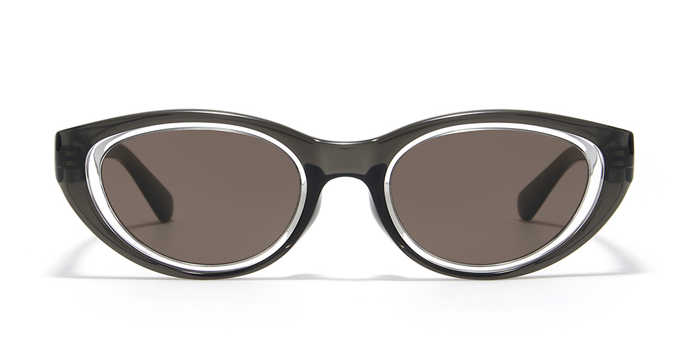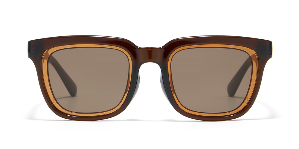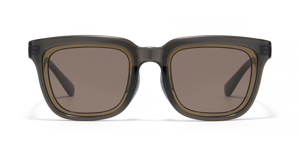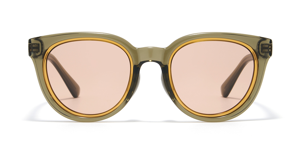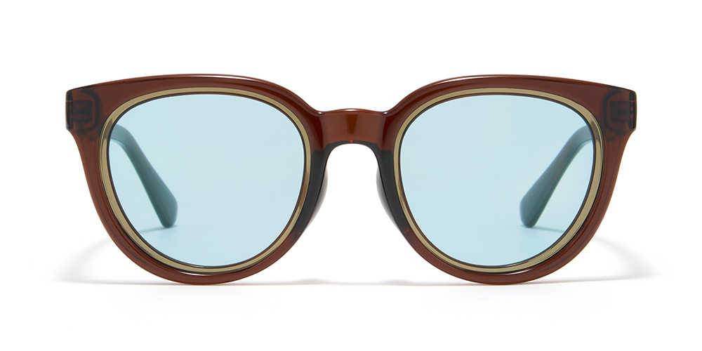 フレーム構造を意図的にわずかに“ずらす”ことで、見る位置や角度によって印象が変化。二つのリムを重ねるような設計と、フレームとレンズの間に忍ばせた異なるカラーが、視覚的な二重ラインを生み出します。この「計算された違和感」が、顔まわりに奥行きと洗練された立体感を演出します。