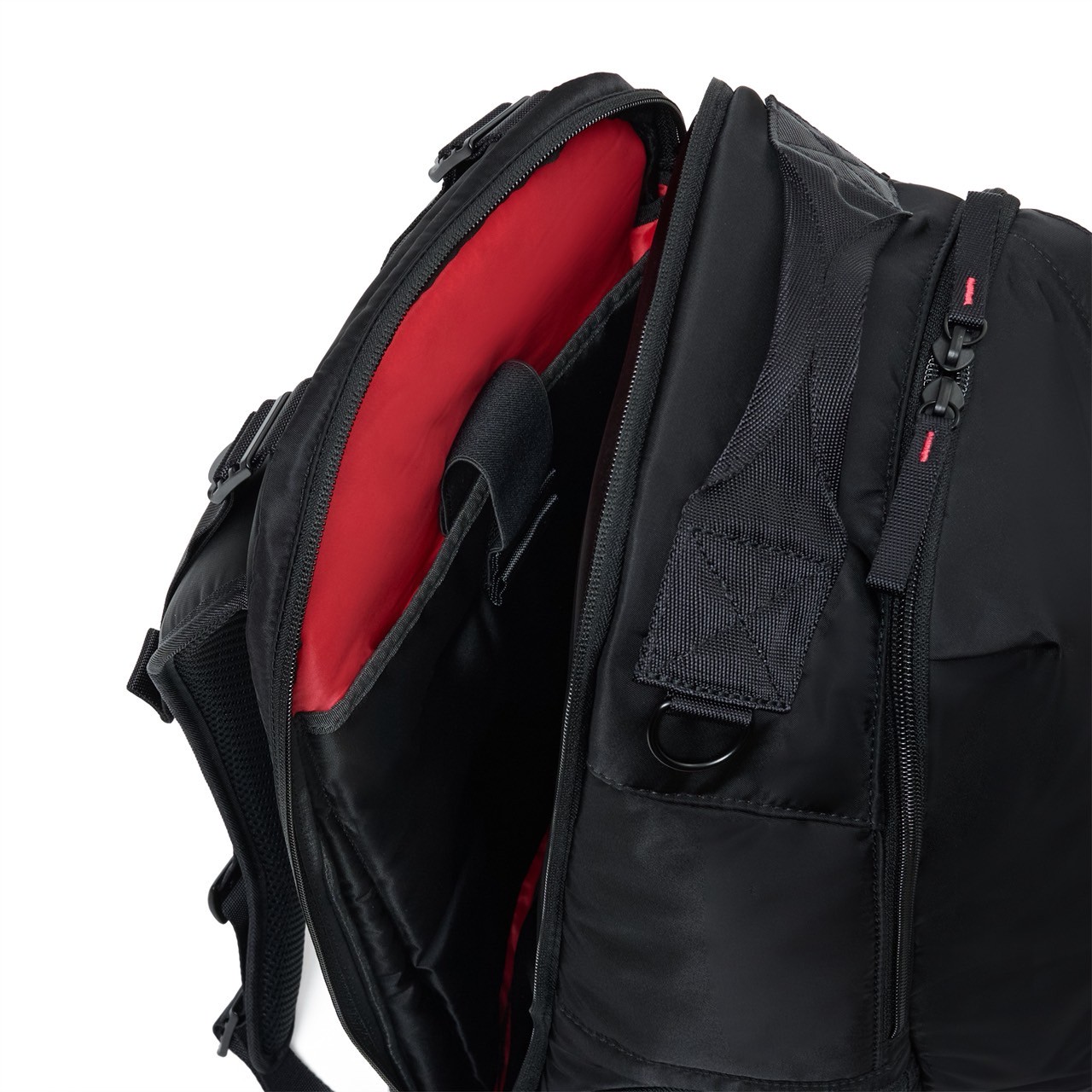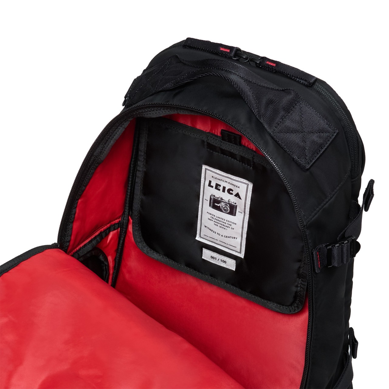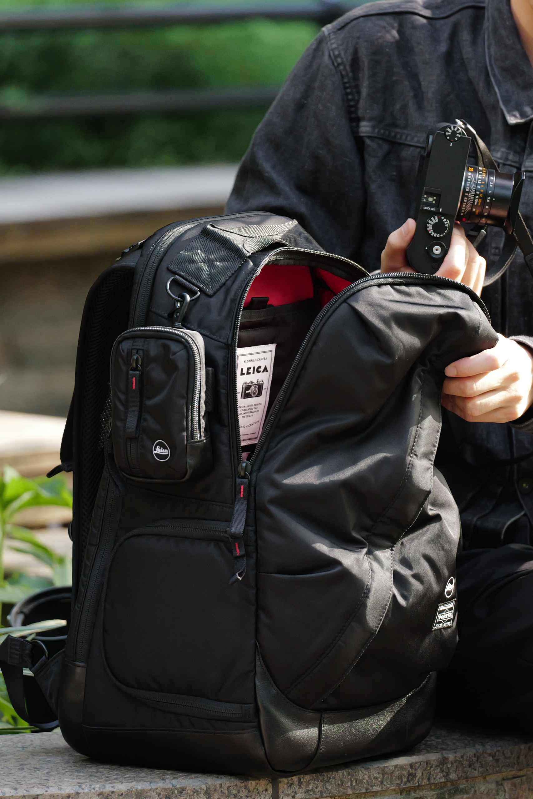 外装はPORTERの象徴であるブラックワントーンで統一。内装にはライカのコーポレートカラーであるレッドを組み合わせることで、両ブランドのアイデンティティを表現しています。