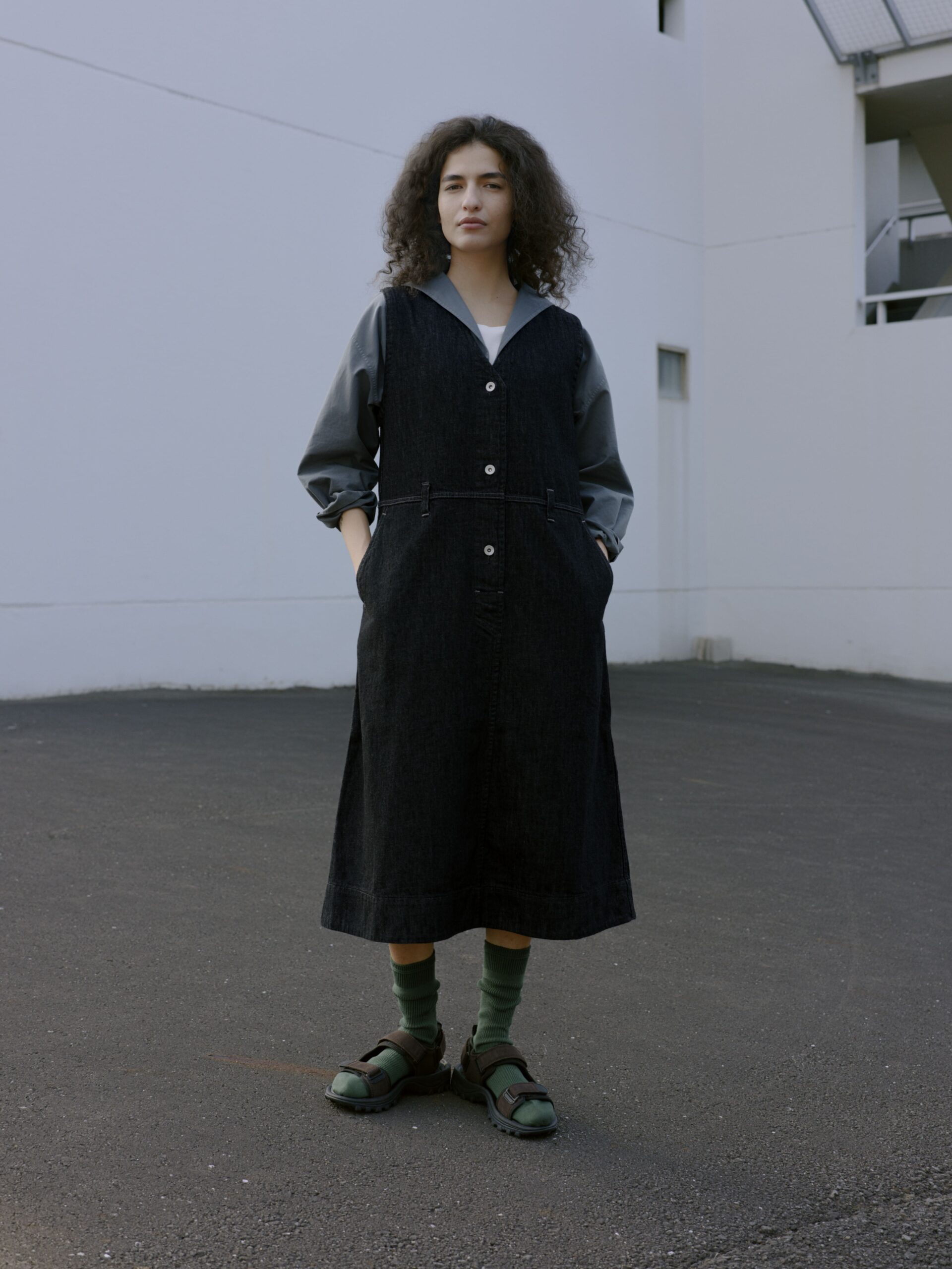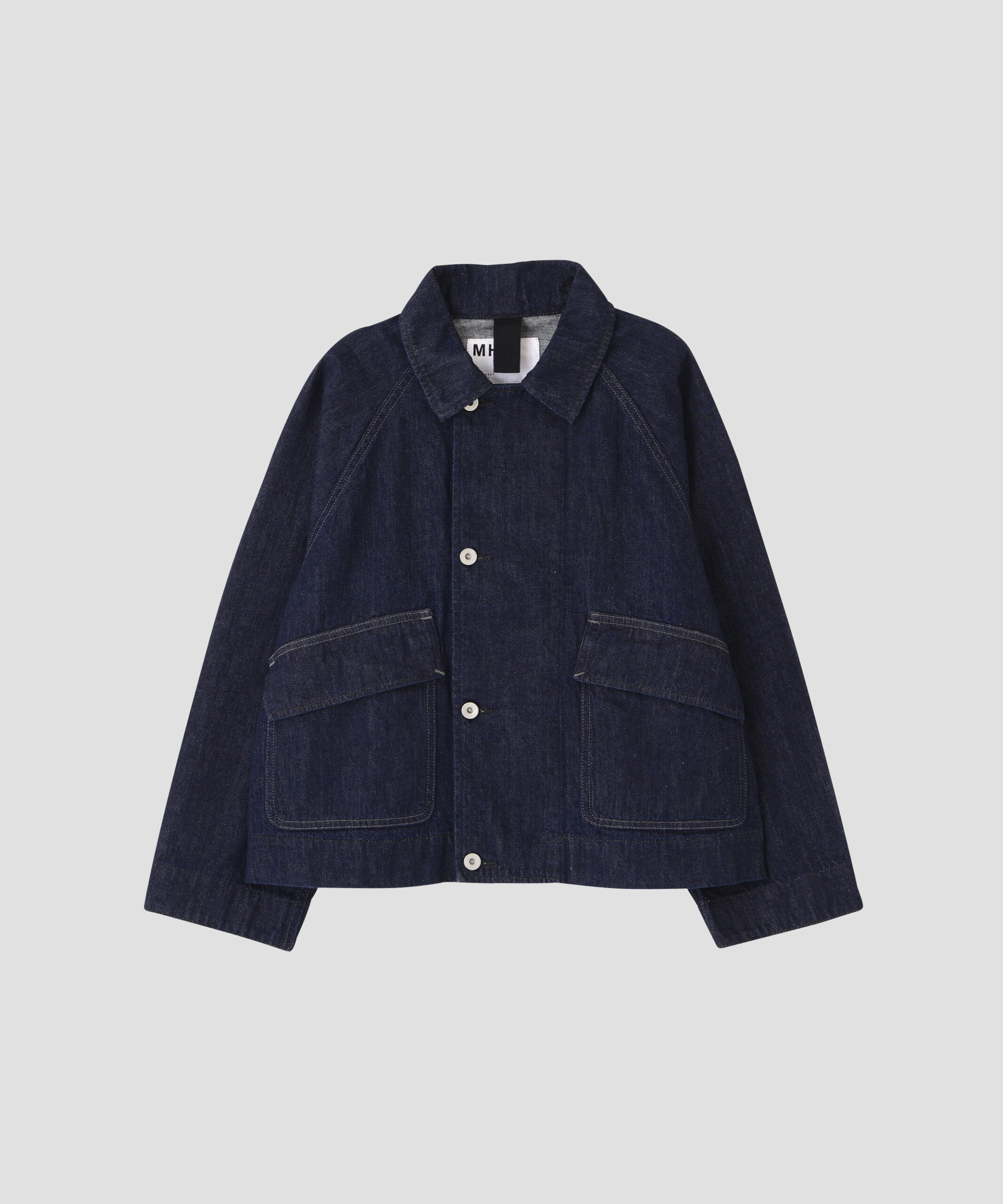 今回、コレクションに初めて加わった「シャツ」は、実は挑戦的な一着です。本来、厚手の生地を扱うデニム工場において、繊細な運針が求められるシャツの制作は困難とされてきました。しかし、CANTON OVERALLSの高い技術力が工程を再構築。タフな素材感と、MHL.らしい洗練されたパターンが見事に融合した、こだわりの一枚が完成しました。