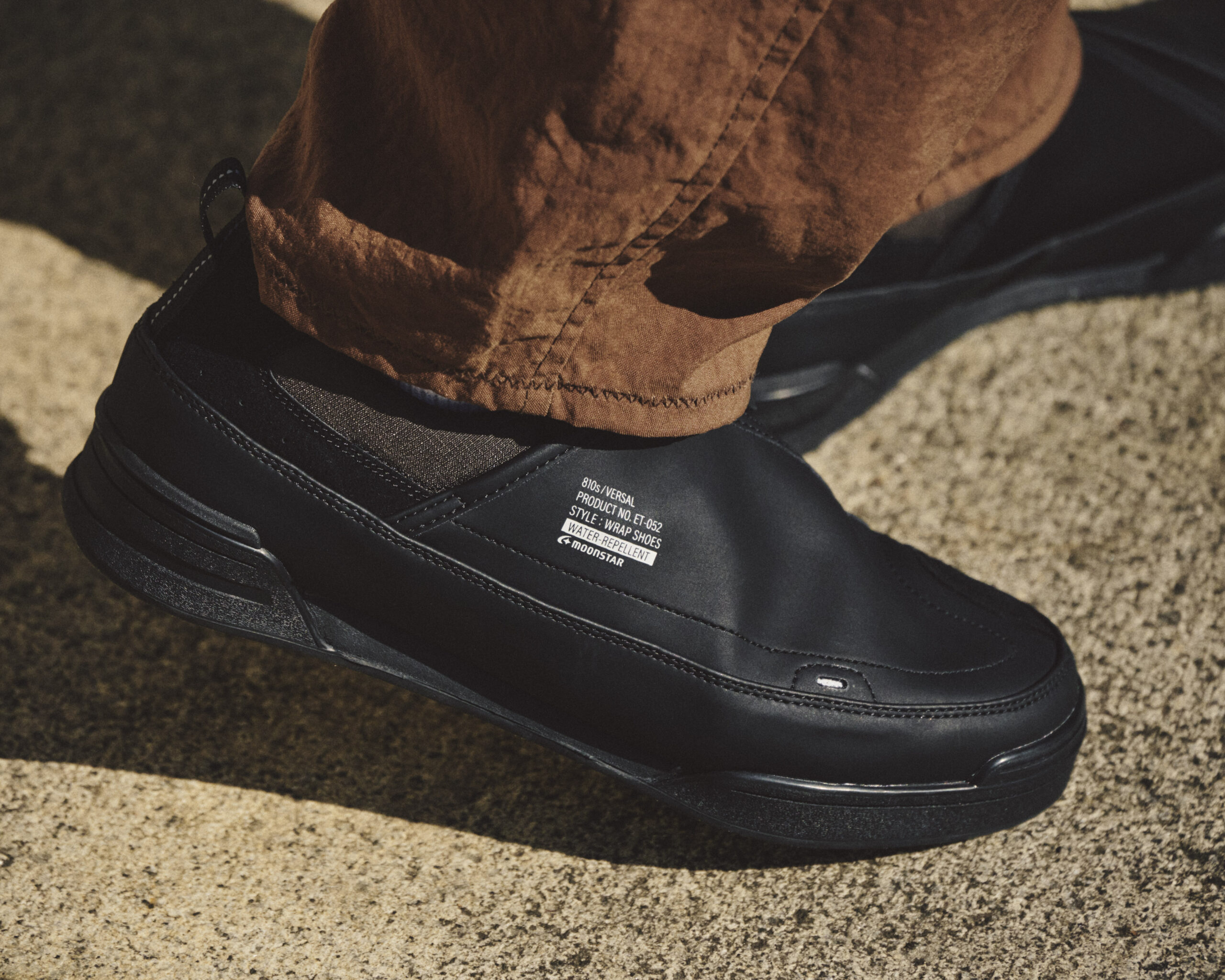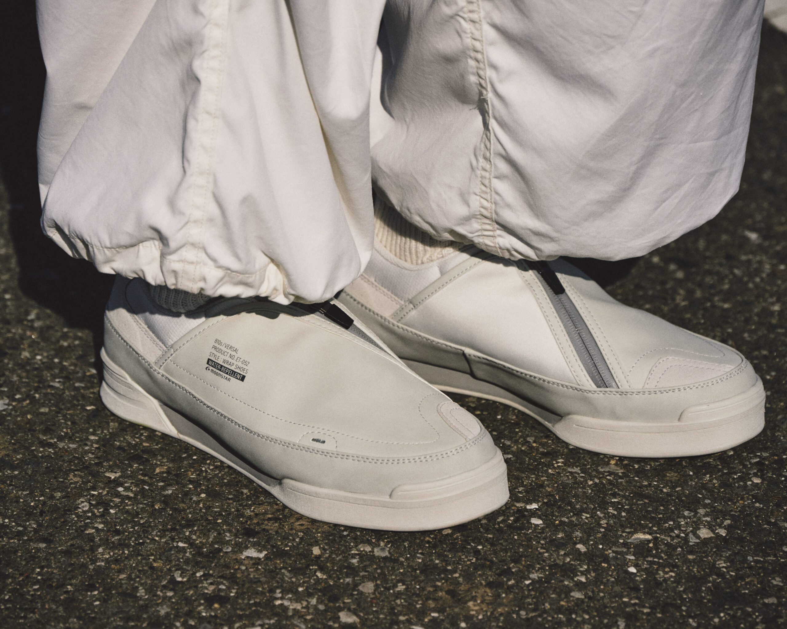 新たにラインナップに加わる「ET052 VERSAL」は、ユニバーサルデザインの心地よさを追求した一足です。防水フィルムを採用したアッパーに加え、4cm・4時間の防水設計という実用性を備えています。 スムーズな脱ぎ履きを可能にするスリッポン構造や、通気性の高いメッシュ素材、そして足裏の負担を軽減する薄型クッションソールなど、日々の動作を軽やかにサポートしてくれます。機能美をミニマルにまとめたデザインは、どんなスタイルにも自然に溶け込みます。