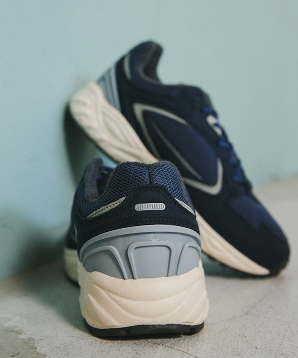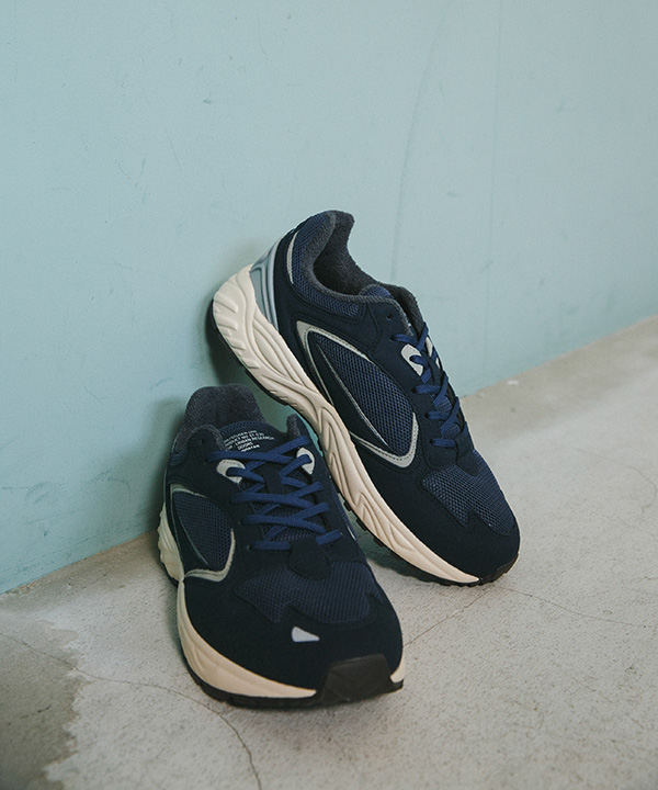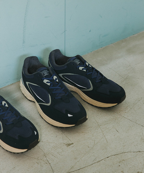 今シーズンはスタイリッシュさをより意識した《NAVY》のワントーンカラー。深みのある上品なネイビーは春の爽やかな装いにアクセントをプラスできる一足に。ヒールカウンターにはグレーを採用し足元でのグラデーションを楽しめます。シューレースはデフォルトのネイビーとプラスでホワイトの2セット 、今回カートン(靴箱)はネイビーで統一した特別なラインナップとなっています。