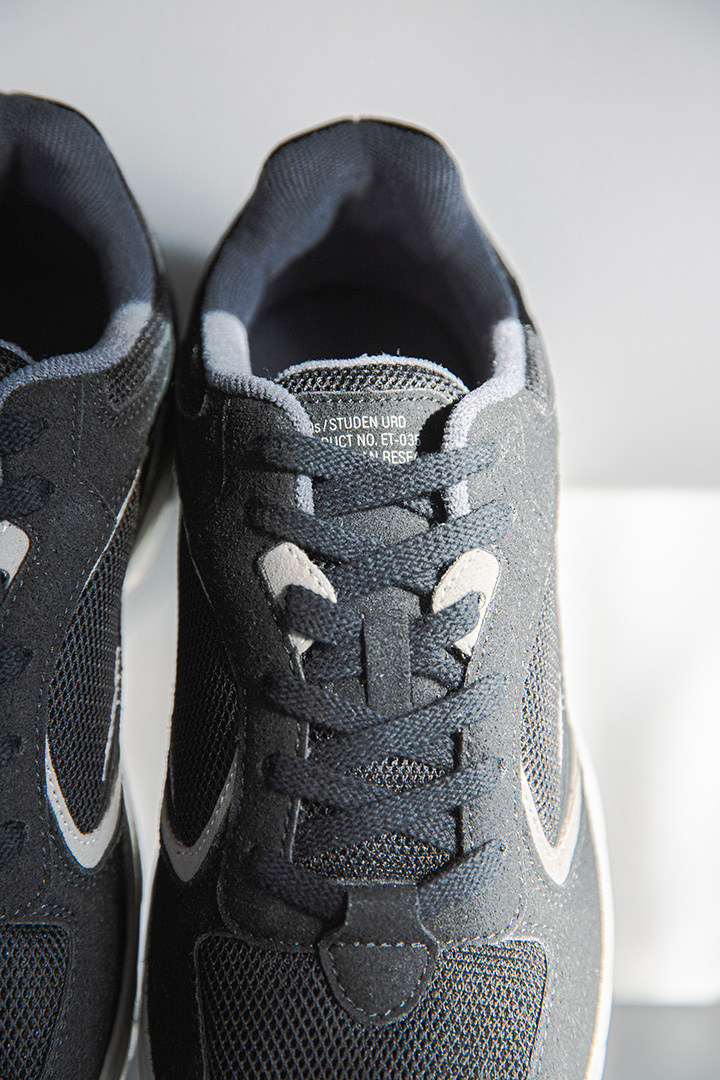 アッパーには、合成皮革でありながら本革のような上質な質感を備えた素材を採用。そこにメッシュを組み合わせることで、高級感と通気性を両立させています。 さらに、その日の気分やボトムスとの相性に合わせて表情を変えられる「2本のシューレース」が付属。細かなパーツの配色にまでこだわった一足は、まさに「ちょうどいい」を超えた、大人のための道具と言えるでしょう。