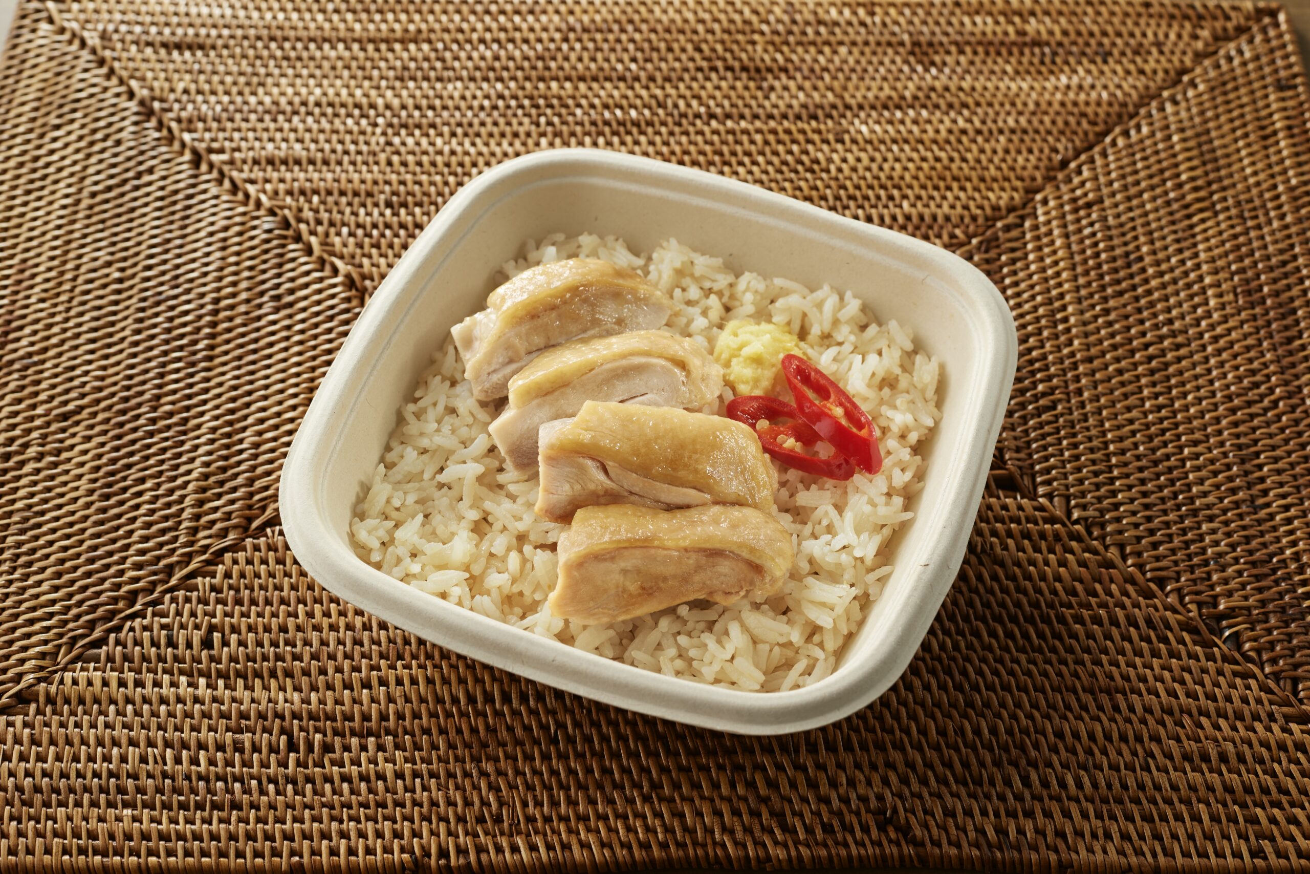 鶏だし、生姜、チキンオイルを絶妙なバランスで混ぜて炊き上げたジャスミンライスは、噛むほどに旨みが広がります。合わせるのは、しっとりと蒸し上げられた鶏肉。現地の屋台料理のような本格的な味わいを、電子レンジひとつで再現できる手軽さは、一度体験すると手放せません。