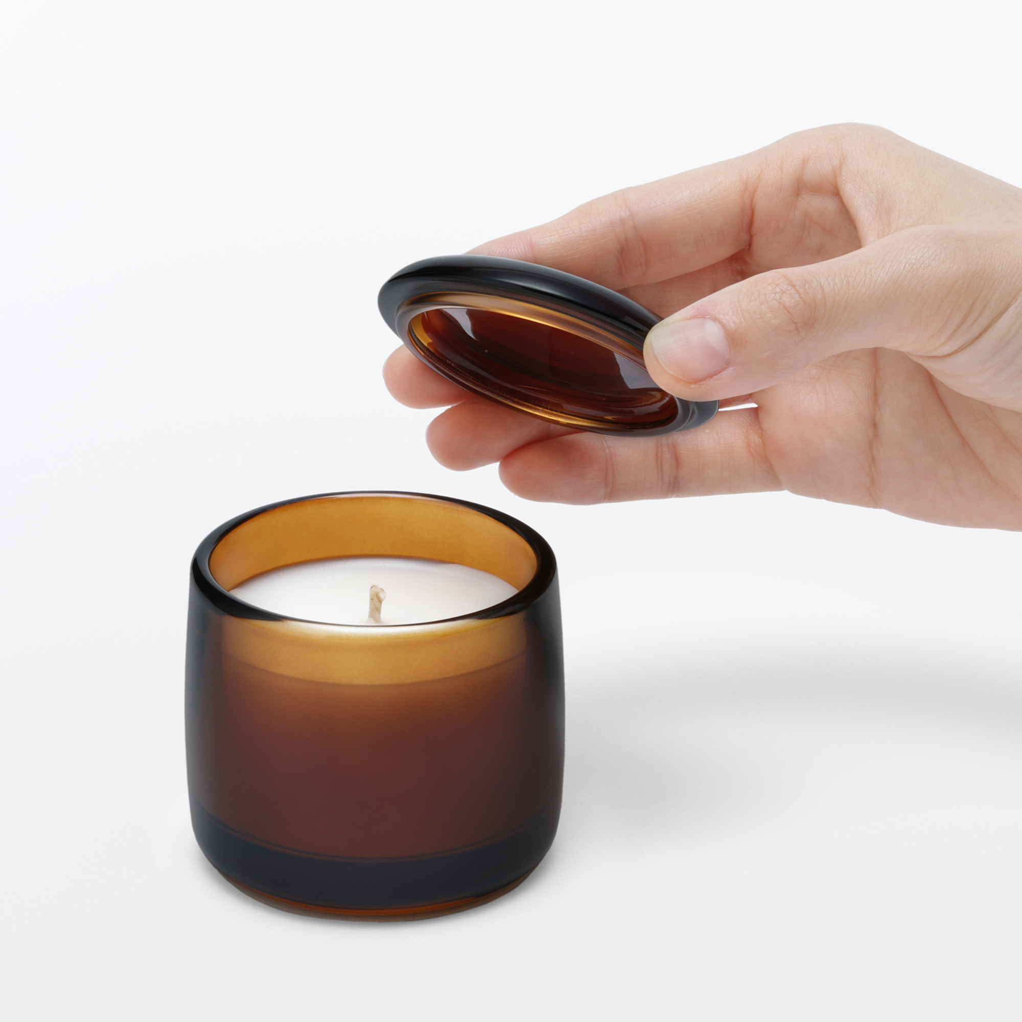 火を灯した瞬間から、ふわりと上質な香りが空間を満たします。さらに特筆すべきは、付属の「蓋」の存在。火を消す際に蓋を閉じることで、消した瞬間の気になる煙の広がりをシャットアウト。空間には心地よい余韻の香りだけが残るよう計算されています。この細やかな配慮こそ、無印良品が追求する「洗練された休息」の形です。