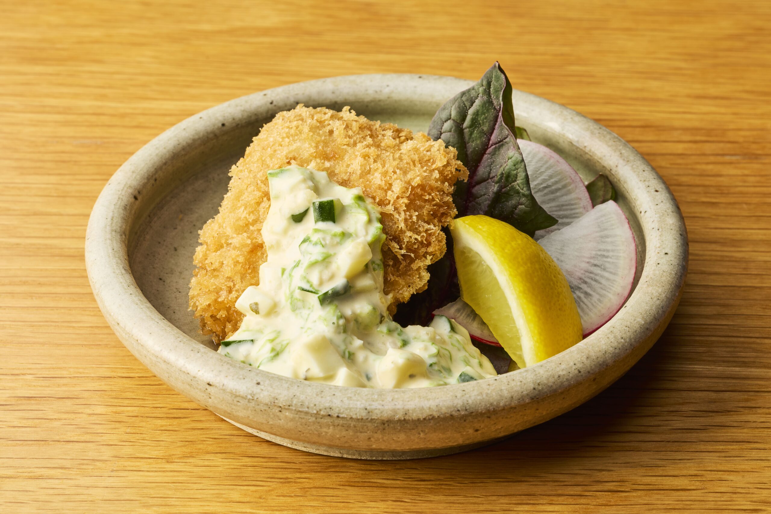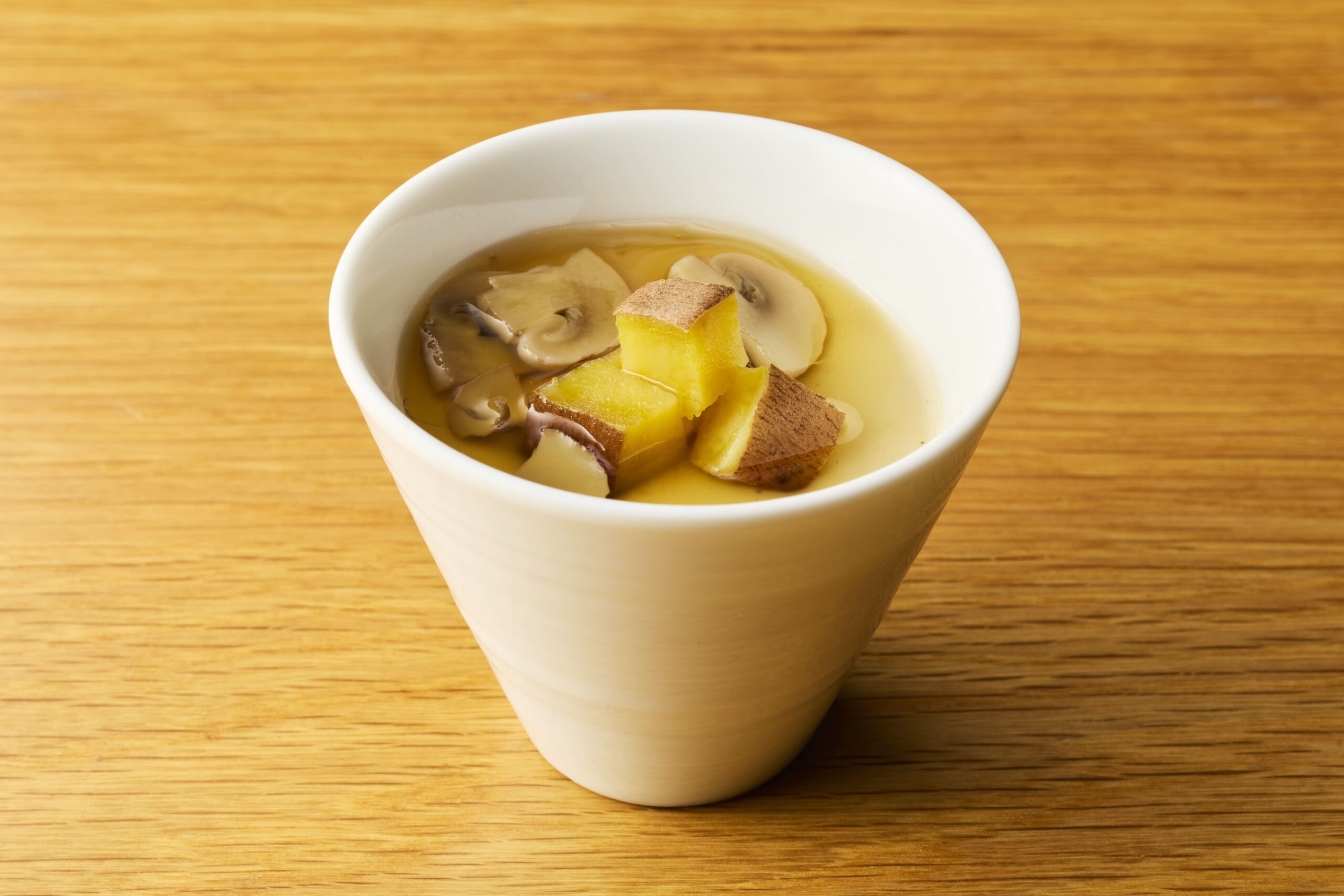 脂の乗った「房総地魚のお造り」や、サクッと軽やかな「アジのフライ」といった海の幸。そして、きめ細やかな肉質が自慢の「里見伏姫牛(さとみふせひめぎゅう)のロースト」まで。安納芋とマッシュルームの茶碗蒸しなど、意外性のある組み合わせが、素材本来の甘みを引き立てます。