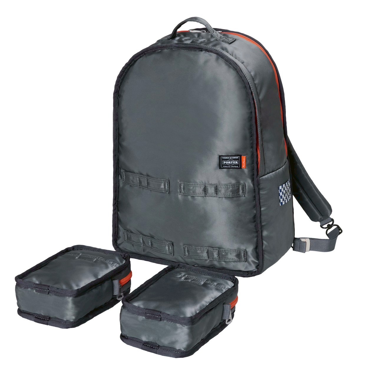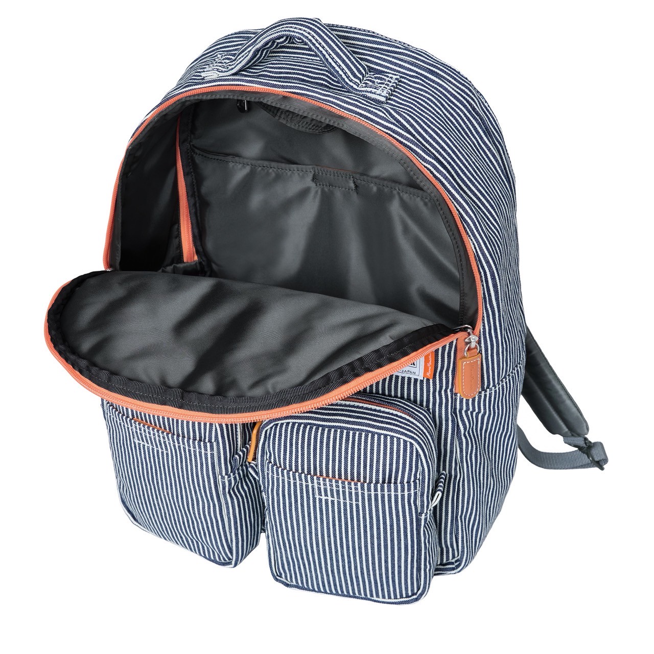 ファスナーテープや革の引き手には、マーク・ニューソン氏とPORTER、その両者がブランドカラーとして大切にしている**「オレンジ」**が配されています。 ポストモダン以降のデザインを牽引してきたマーク氏の純粋なフォルムと、PORTERが培ってきた製造プロセスの妙。一見シンプルでありながら、細部には二者が共有する「機能への挑戦」という哲学が凝縮されています。