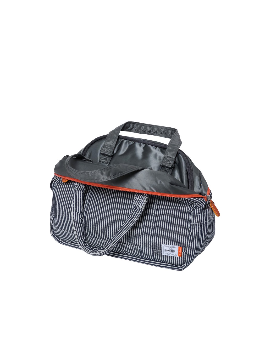 Nylon Twill Side: PORTERの代名詞とも言える、滑らかで強靭な「ナイロンツイル」。都会的で洗練された質感が、ヒッコリーとは対照的な表情を見せます。