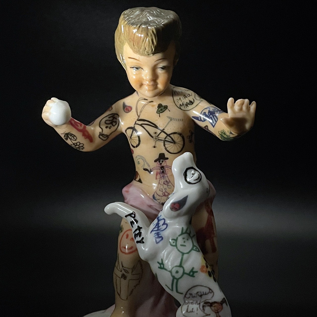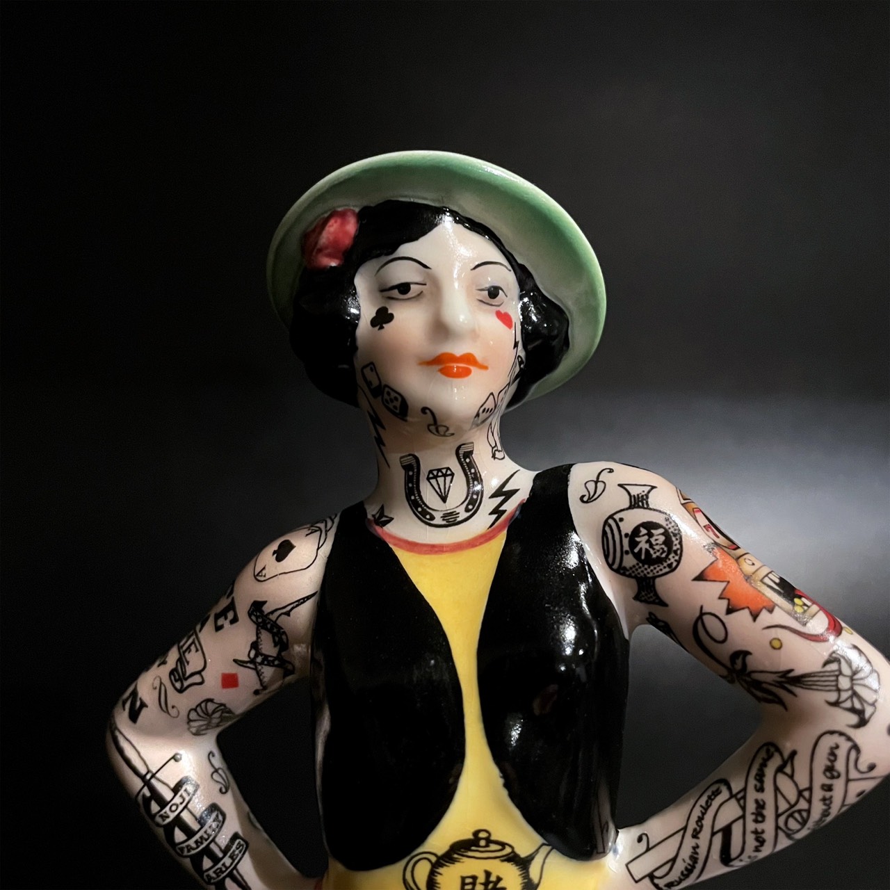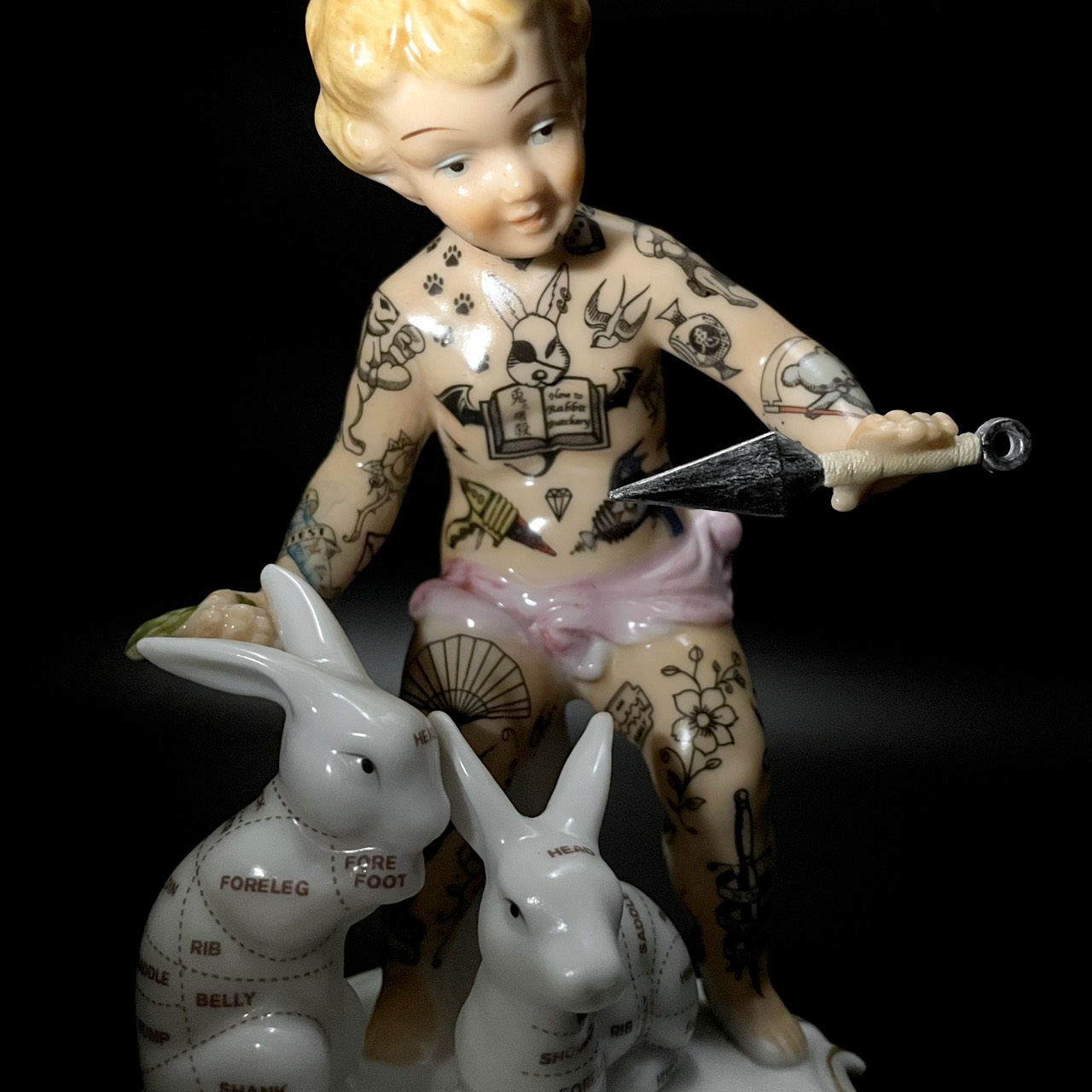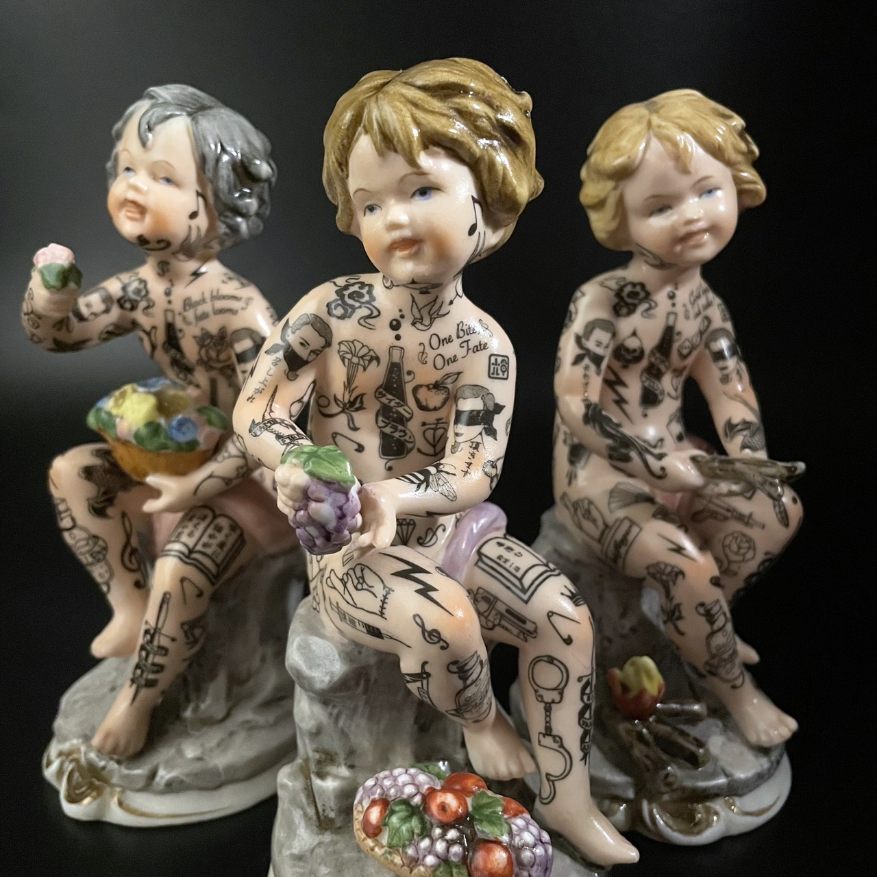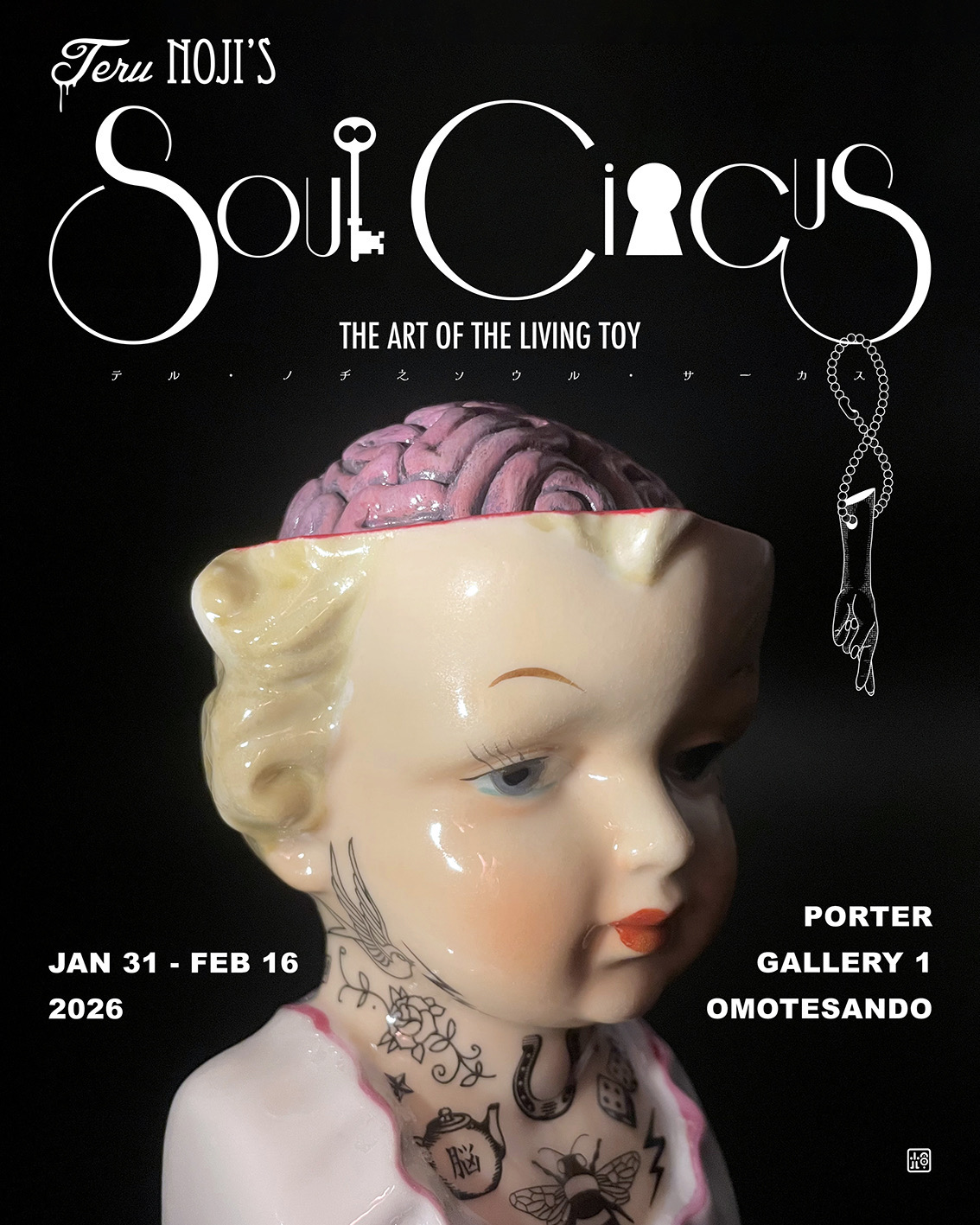 "The Art of the Living Toy(生きる玩具の芸術)"をテーマにした本展示では、タトゥーを施したドール作品をはじめ、アンティーク陶材フィギュアや、アンティークの電話の呼び鈴をもとにした立体作品など、複数のシリーズを展示、販売いたします。