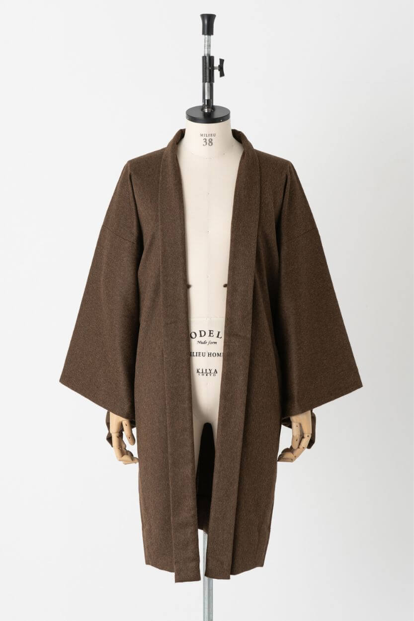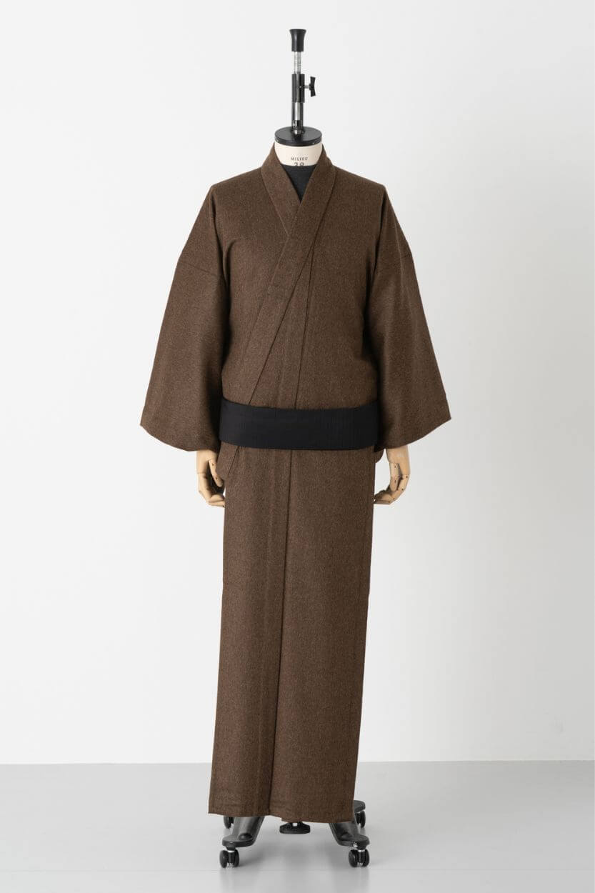 カラーはDARK BROWNの1色展開で、お客様の寸法に合わせたマイサイズオーダーにてお仕立てする。納期は、きもの・羽織・作務衣共に寸法確定から約3週間となる。