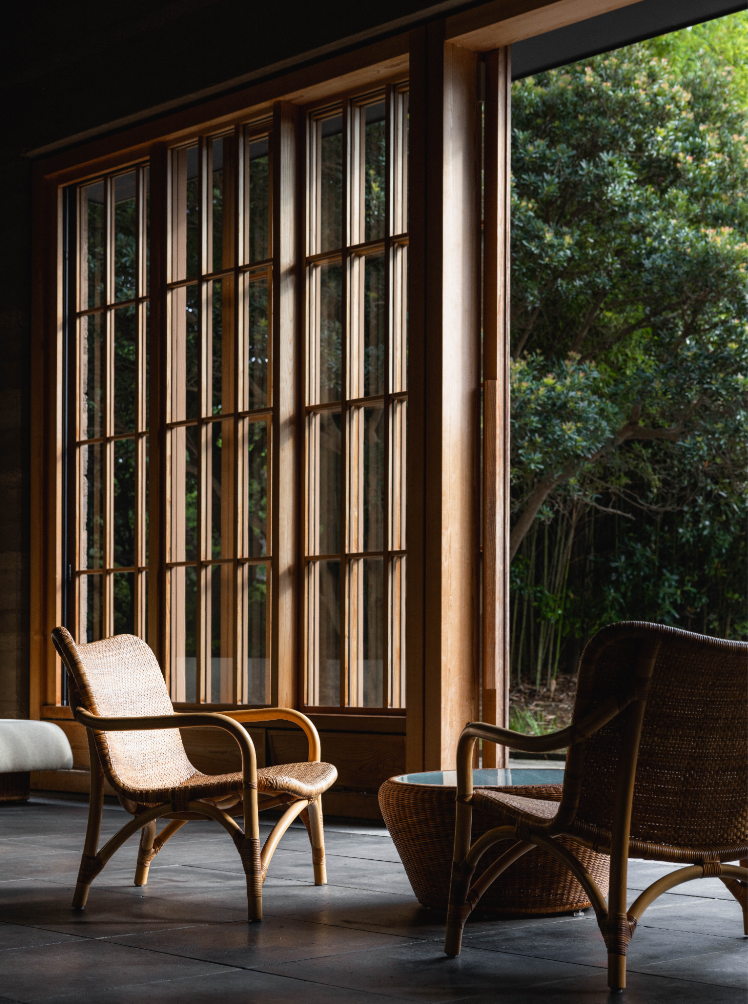 沼津倶楽部の静謐な空間で、鞄と建築という異なるマテリアルを通して、職人の手仕事の根源にある美しさが重なり合う、特別な空間をご堪能ください。